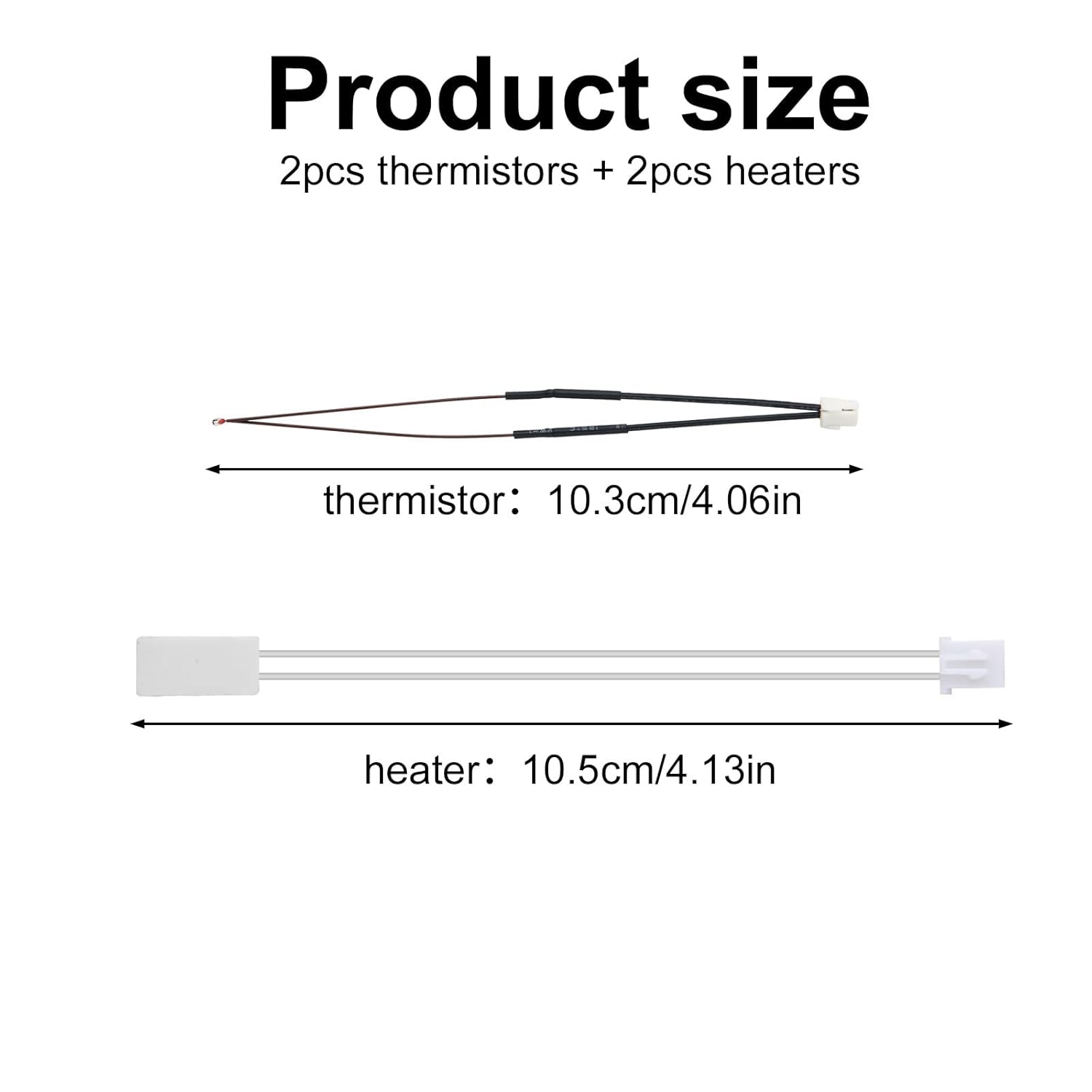 - Proper Size: Thermistor: 10.3cm/4.06in; Cartridge heater: 10.5cm/4.13in. This thermistor work well with daily filaments such as PLA, ABS, TPU, PETG, etc.