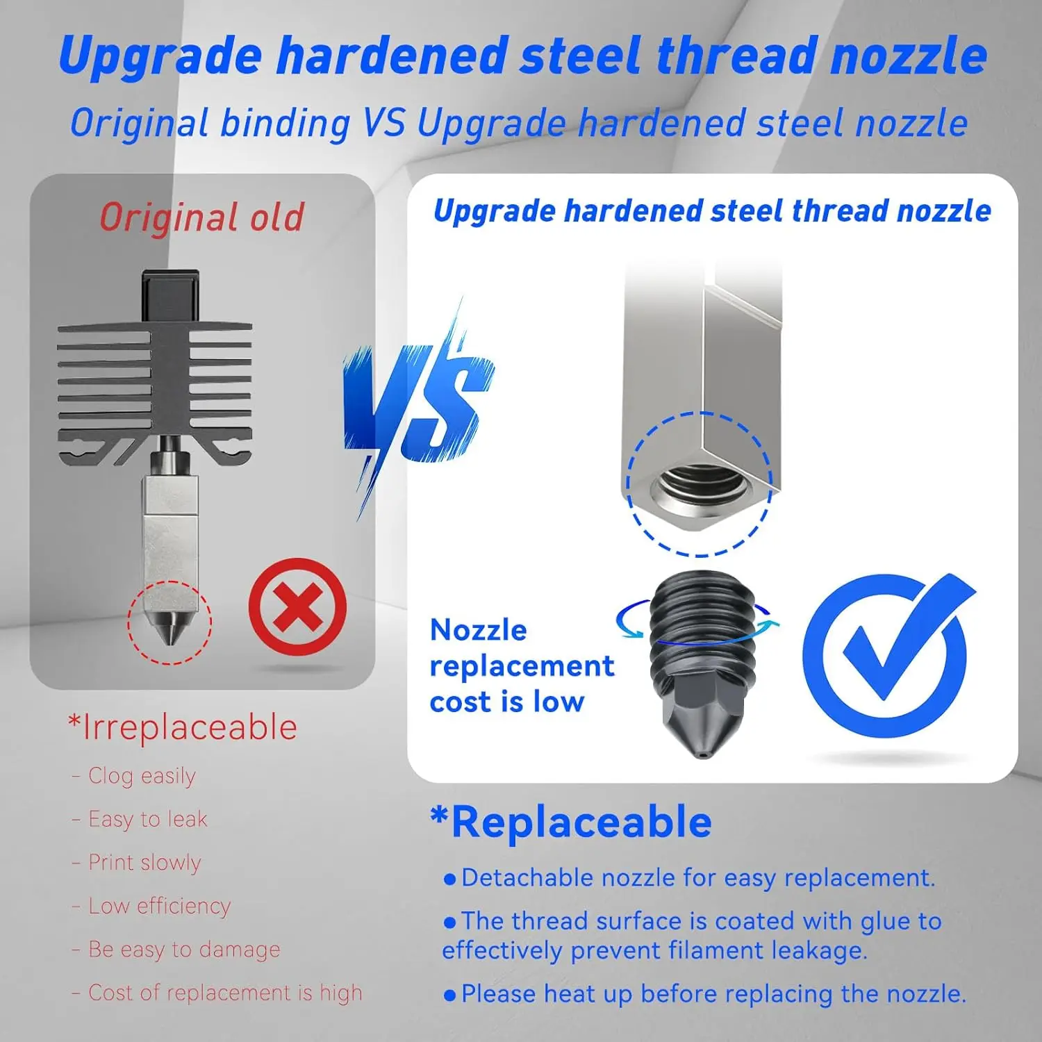 Premium Material: Our 3d printer nozzle is made of premium hardened steel, with high hardness, durability and heat resistance, making it ideal for high-temperature 3d printing.