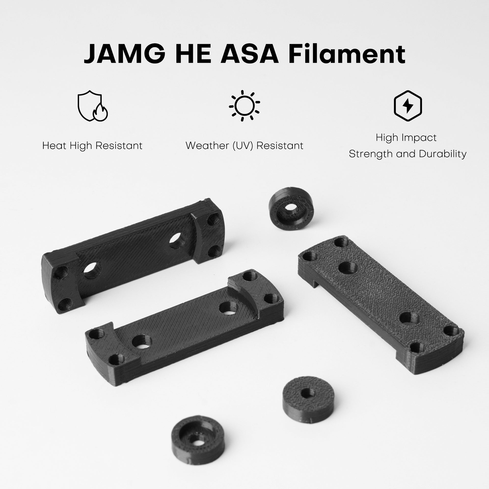 So if you use the JAMG HE ASA spool, you’re using a filament designed for long-lasting, robust prints — not just decorative objects.